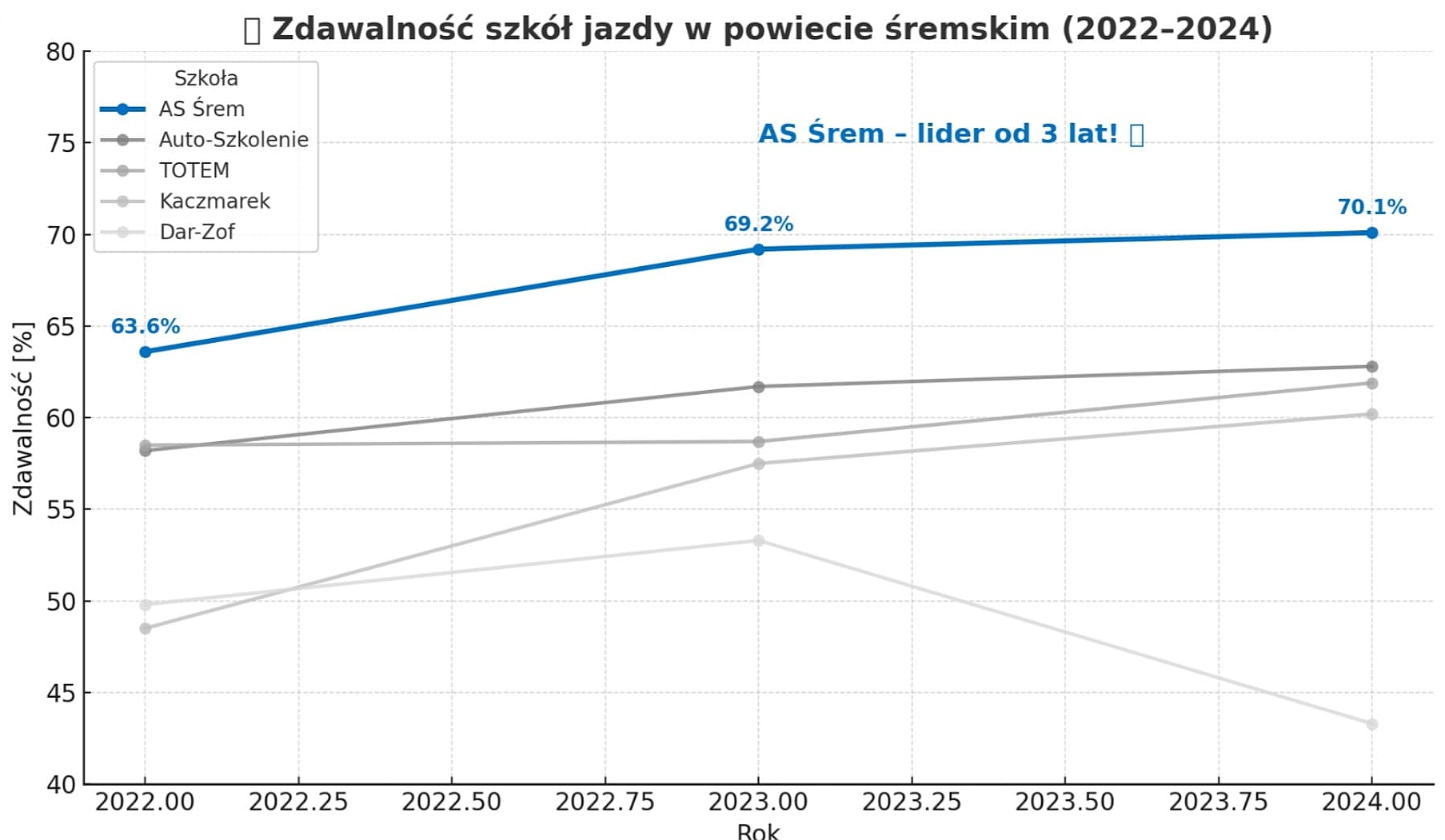 Trzeci rok z rzędu OSK AS został NUMEREM 1 wśród ośrodków szkolenia kierowców według statystyk Starostwa Śremskiego w zakresie zdawalnośći egzaminów państwowych na prawo jazdy wśród lokalnych szkół oraz według prestiżowego i rzetelnego rankingu ośrodków szkolenia kierowców superprawojazdy.pl!