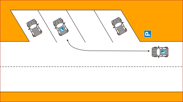 wjazd przodem wyjazd tyłem (możliwa jedna korekta toru jazdy), przy czym miejsce do parkowania wyznacza egzaminator, wskazując je osobie egzaminowanej; po zaparkowaniu musi być możliwość opuszczenia pojazdu przez kierowcę i pasażera z obydwu stron pojazdu, a pojazd musi być zaparkowany w sposób zgodny z przepisami ruchu drogowego (należy sprawdzić możliwość opuszczenia pojazdu); parkowanie odbywa się z zachowaniem zasad ruchu drogowego,