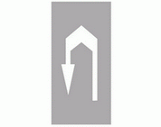 P-8c "strzałka kierunkowa do zawracania" Znak ten oznacza, że jazda z pasa ruchu, na którym są umieszczone, jest dozwolona tylko w kierunku wskazanym strzałką; połączone symbole znaków P-8a, P-8b lub P-8c oznaczają zezwolenie na ruch w kierunkach wskazanych strzałkami kierunkowymi.