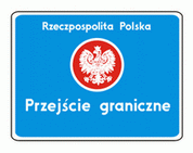 F-1 "przejście graniczne" Tablica taka informuje o czynnym przejściu granicznym.