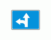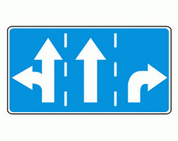 F-11 "kierunki na pasie ruchu" Tablica ta wskazuje dozwolone, zgodnie ze strzałkami umieszczonymi na znaku, kierunki jazdy z pasa ruchu, nad którym znak został umieszczony.