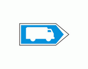 F-12 "znak wskazujący przejazd tranzytowy umieszczany przed skrzyżowaniem" Tablica ta wskazują zgodnie ze strzałką kierunek przejazdu tranzytowego pojazdów wskazanych umieszczonym na znaku symbolem pojazdu określonym w § 23 ust. 2.