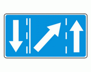 F-15 "niesymetryczny podział jezdni dla przeciwnych kierunków ruchu" Tablica ta wskazuje pasy ruchu przeznaczone do jazdy w podanych kierunkach.