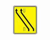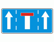 F-17 "koniec pasa ruchu na jezdni jednokierunkowej" Tablica ta uprzedza o końcu wewnętrznego pasa ruchu na jezdni wskazanej na znaku.