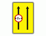 F-16 "koniec pasa ruchu na jezdni dwukierunkowej" Tablica ta uprzedza o końcu wewnętrznego pasa ruchu na jezdni wskazanej na znaku.