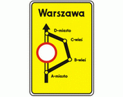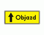 F-9 "znak prowadzący na drodze objazdowej" Tablica ta wskazuje kierunek ruchu pojazdów na wyznaczonym objeździe.