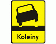 T-13 Tabliczka wskazująca odcinek drogi, na którym występują deformacje nawierzchni w postaci kolein.