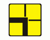 T-6d Tabliczka wskazująca prostopadły przebieg drogi z pierwszeństwem przez skrzyżowanie oraz układ dróg podporządkowanych (umieszczana na drodze podporządkowanej).