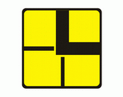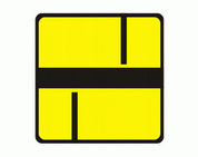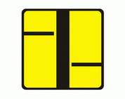 T-6a Tabliczka wskazująca rzeczywisty przebieg drogi z pierwszeństwem przez skrzyżowanie (umieszczana na drodze z pierwszeństwem).